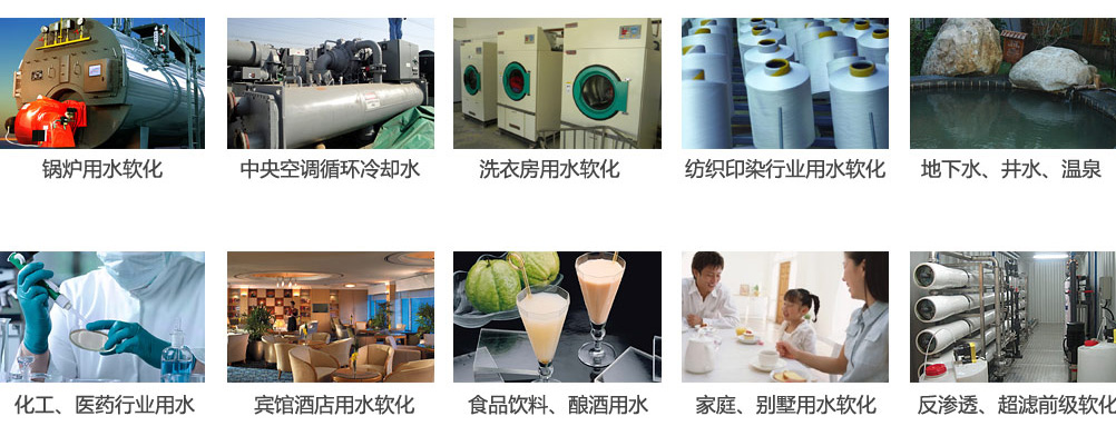 主要(yao)用于(yu)工業(ye)及民(min)用鍋(guo)爐(lu)軟化水設備,如(ru)鍋(guo)爐(lu)給水、空調(diao)系(xi)統補充(chong)水,換熱器、洗(xi)浴、制(zhi)衣廠、以(yi)及純凈水設備、反滲透設備系(xi)統的預處理等等。